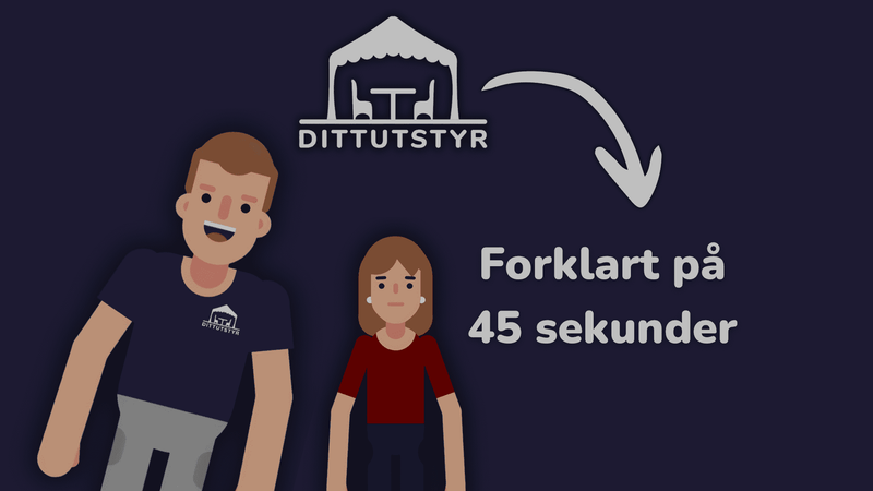 Ditt Utstyr er et sted jeg kan anbefale om du trenger noe til ditt arrangement! Enten det er stoler, bord, eller lyd og lysutstyr. De skaffer også enkelt andre ting på forespørsel. Pålitelige gutter som holder avtalene sine, og som har utstyr av god kvalitet. Dem rigger opp og ned utstyret du leier, noe som gjør hele prosessen veldig enkelt for meg som leier utstyret. Kommer til å benytte meg av disse guttene ved en senere anledning også!